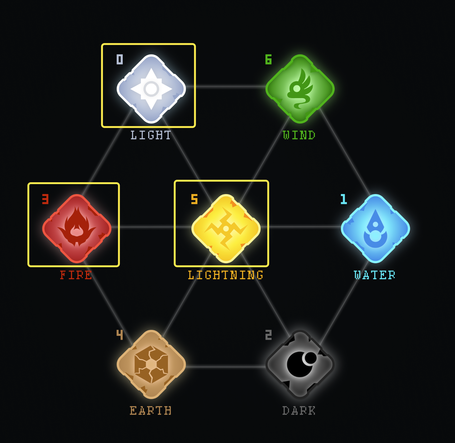 **High-level Formation:** Three attributes connected two by two, forming a stable triangular structure, can exert five times the power of a Low-level Formation. Examples: 035, 056, 156, etc.&#x20;
